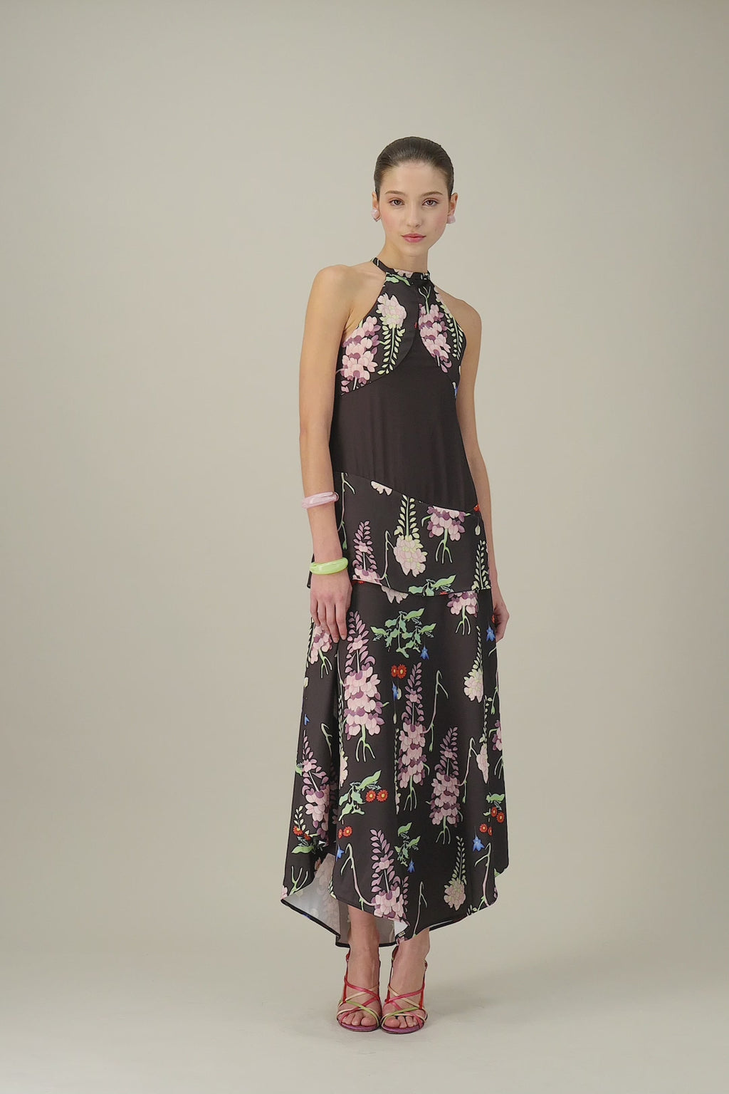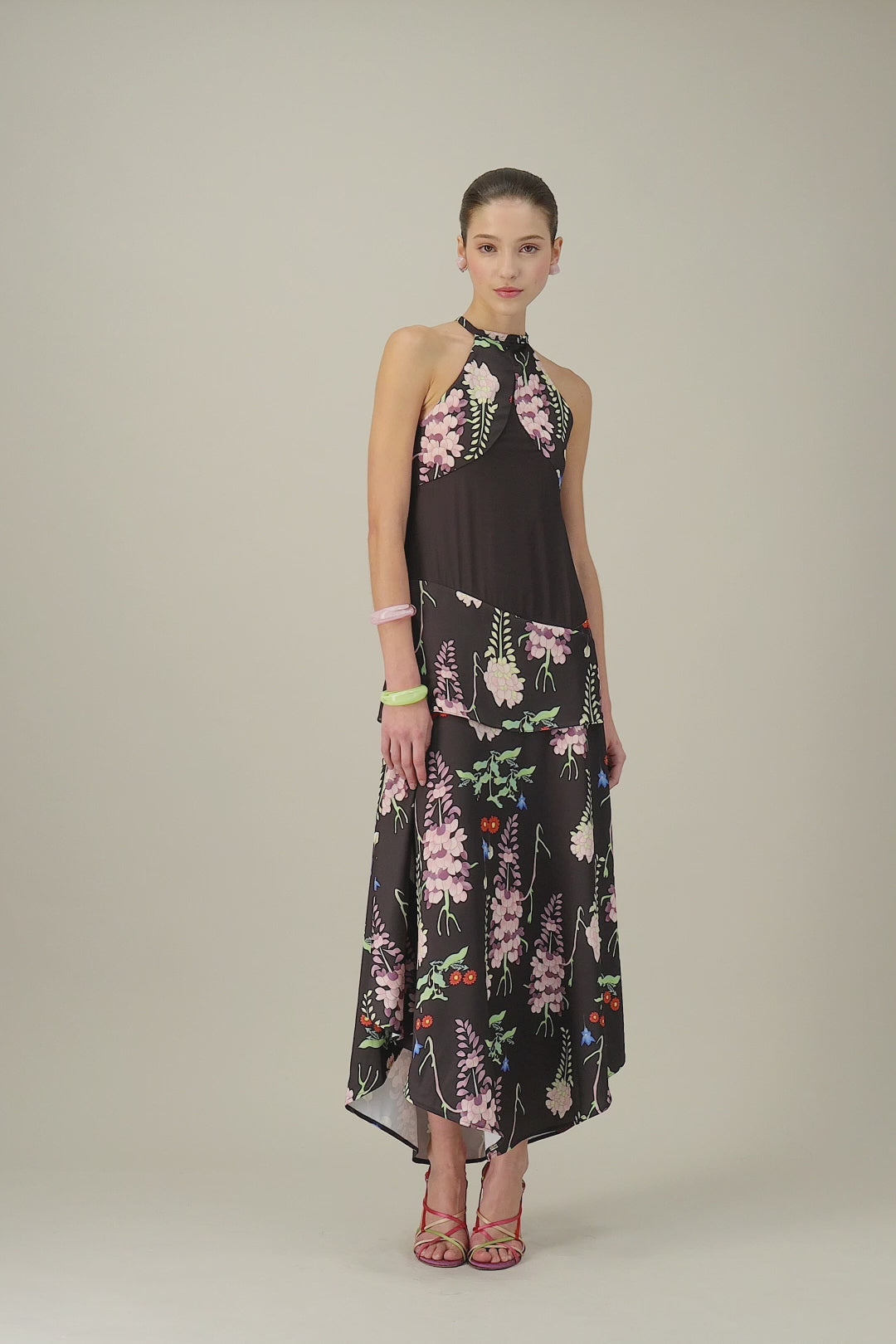 Son dégradé lumineux, ses lignes fluides et son imprimé floral délicat composent une silhouette fraîche et éclatante, pleine de charme.