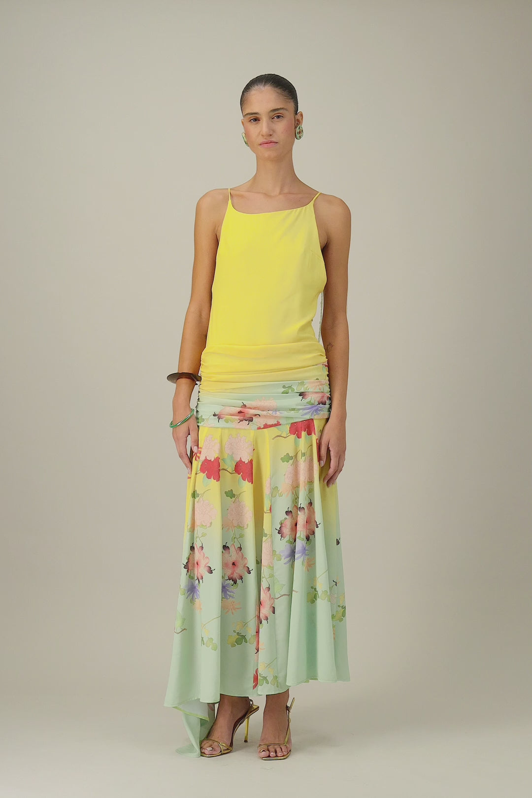 Son dégradé floral, sa coupe fluide et son dos nu spectaculaire en font la pièce parfaite pour briller tout l’été.
