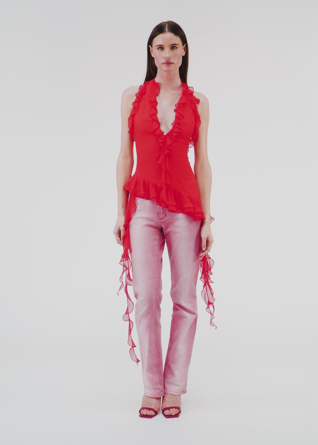 Laissez-vous porter par le charme de notre top Joya ! Il est orné de délicats volants escargot sur le buste et sur les finitions pour une touche de drama !