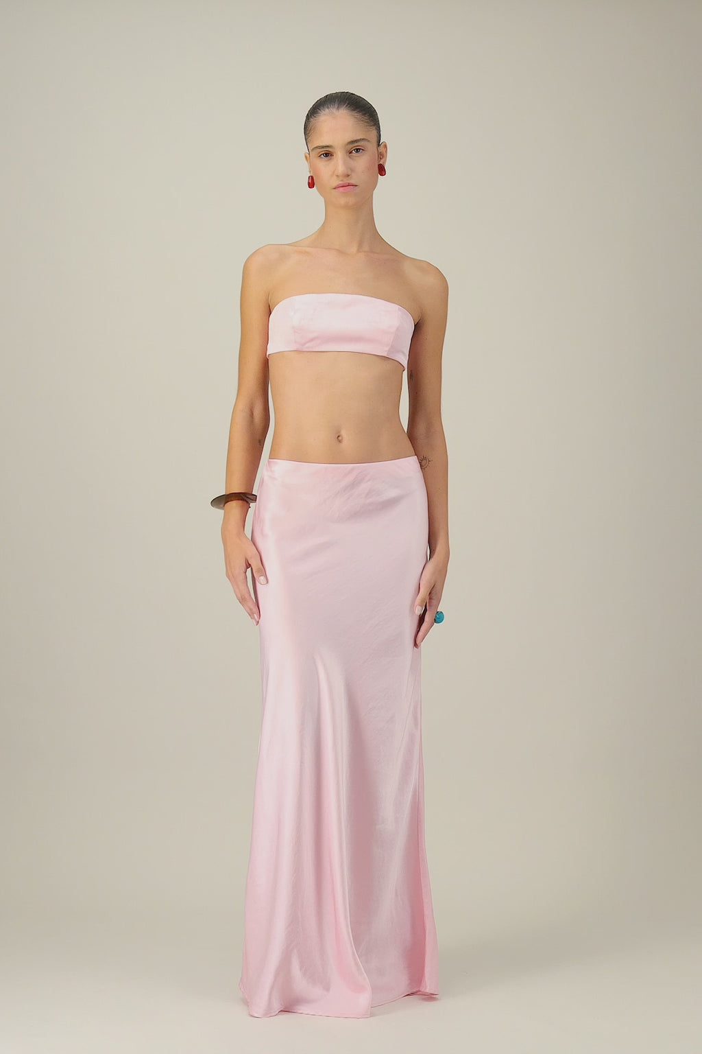 Le Lily Set, c’est l’ensemble ultra-sexy de la saison : un bandeau audacieux, une jupe satinée qui glisse sur la peau et un rose candy irrésistible.